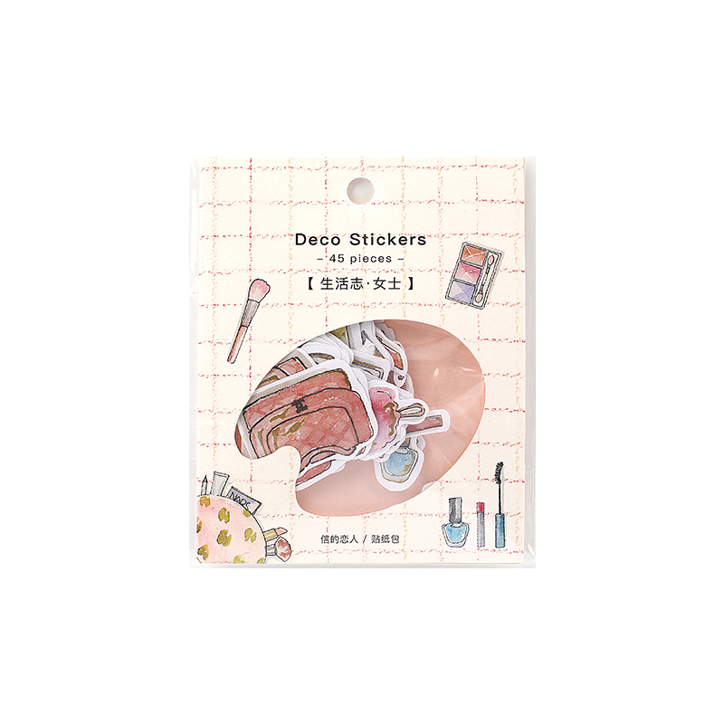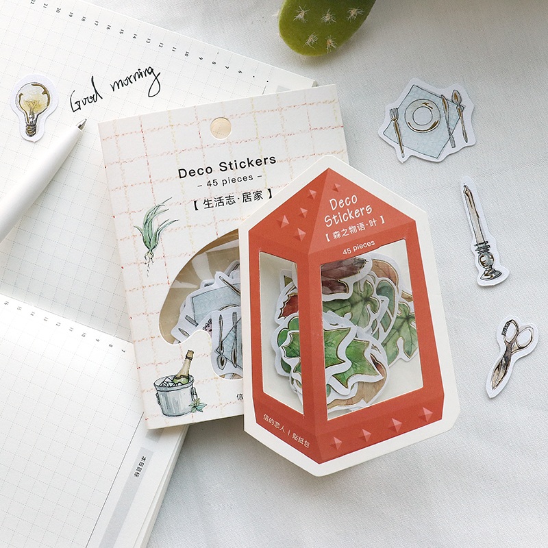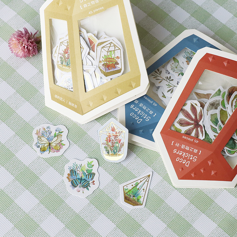 云木雜貨 燙金貼紙包 水彩手繪小物手賬裝飾diy相冊賀卡貼紙45枚