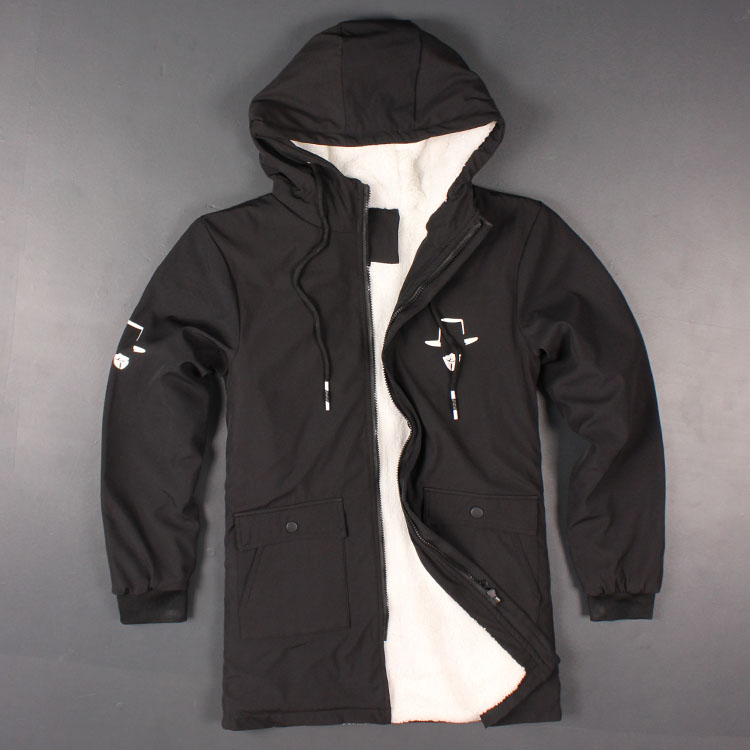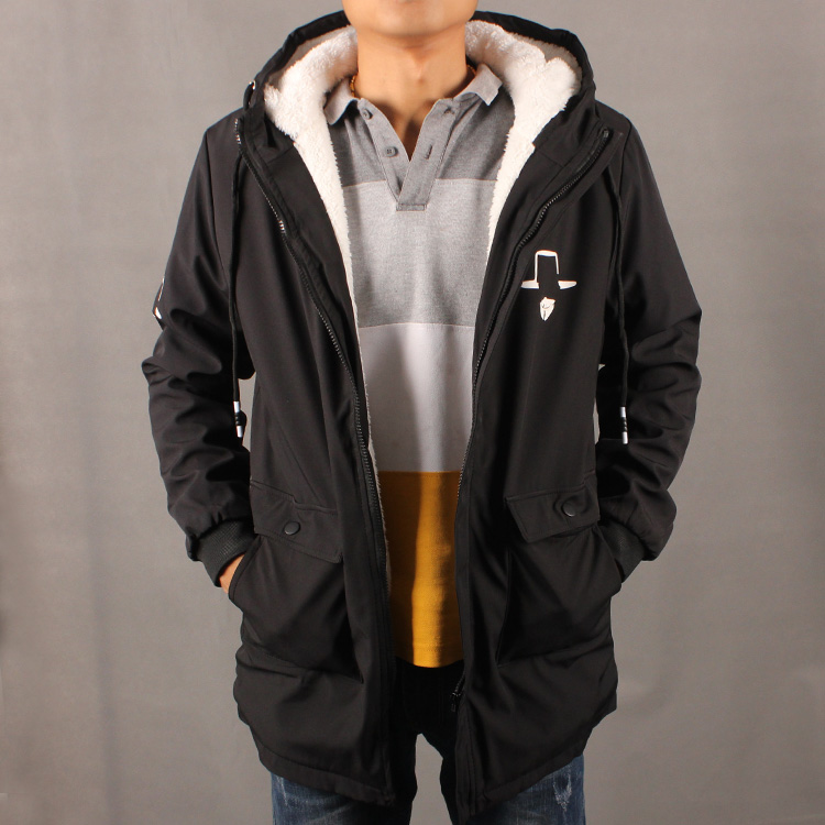 彈力面料 保暖羊羔絨中長款棉衣 時尚圖案 秋冬男連帽外套開衫