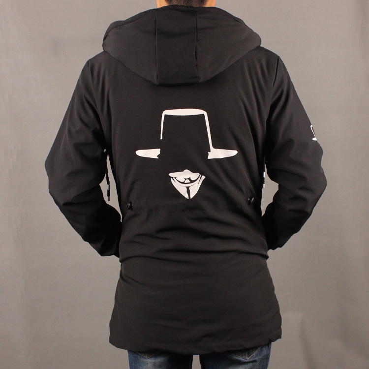 / 彈力面料 保暖羊羔絨中長款棉衣 時尚圖案 秋冬男連帽外套開衫