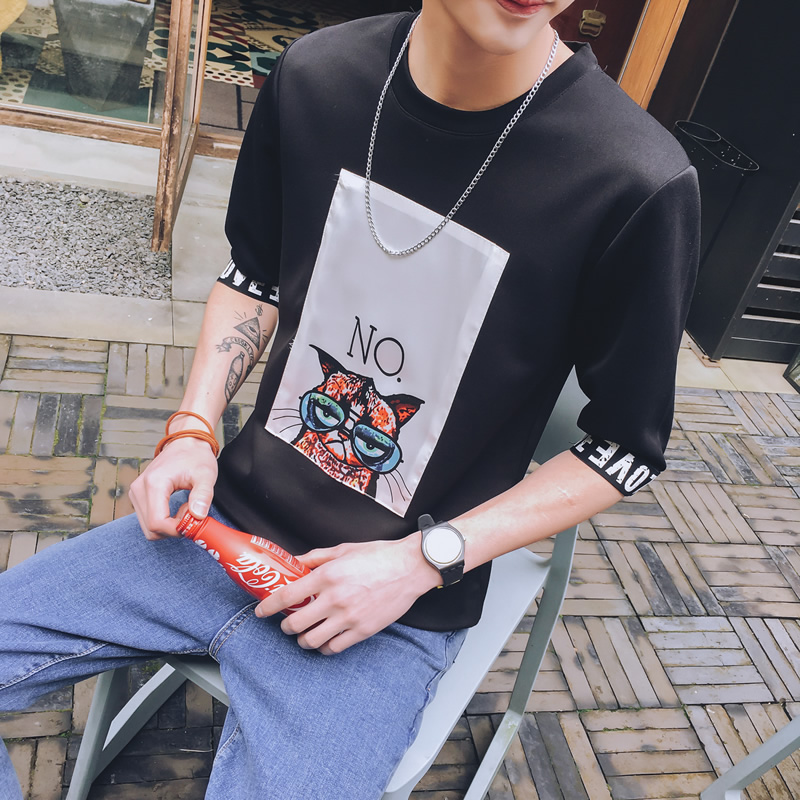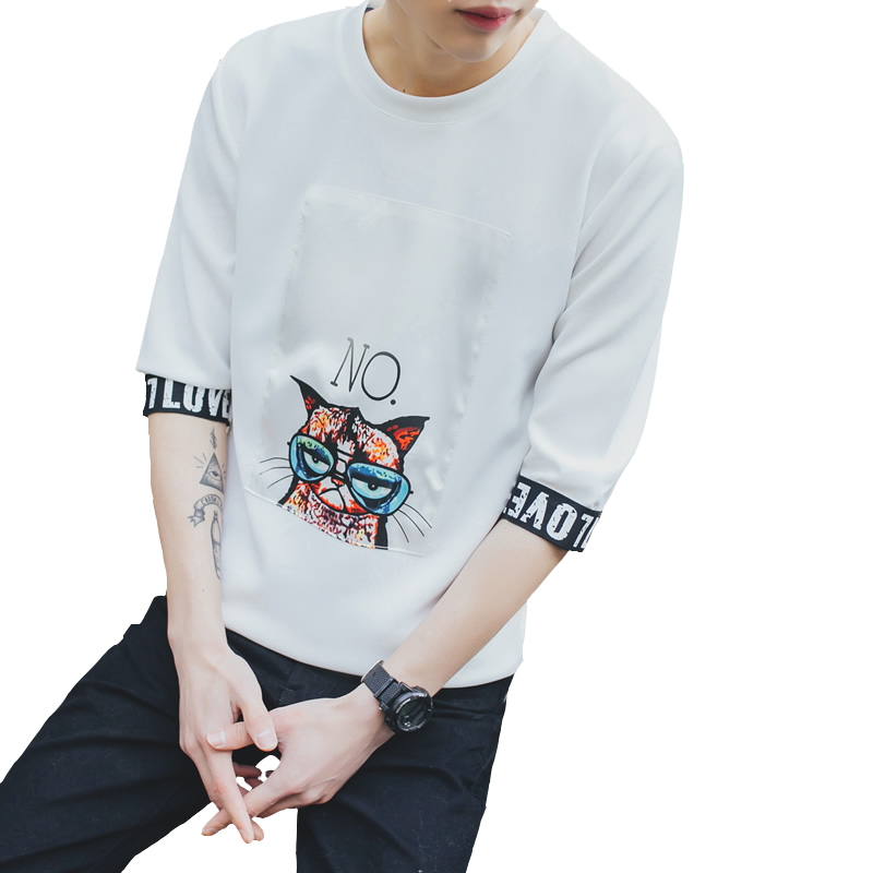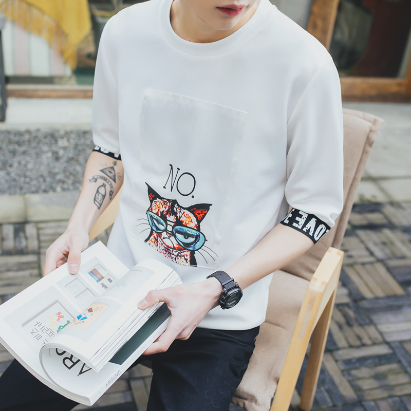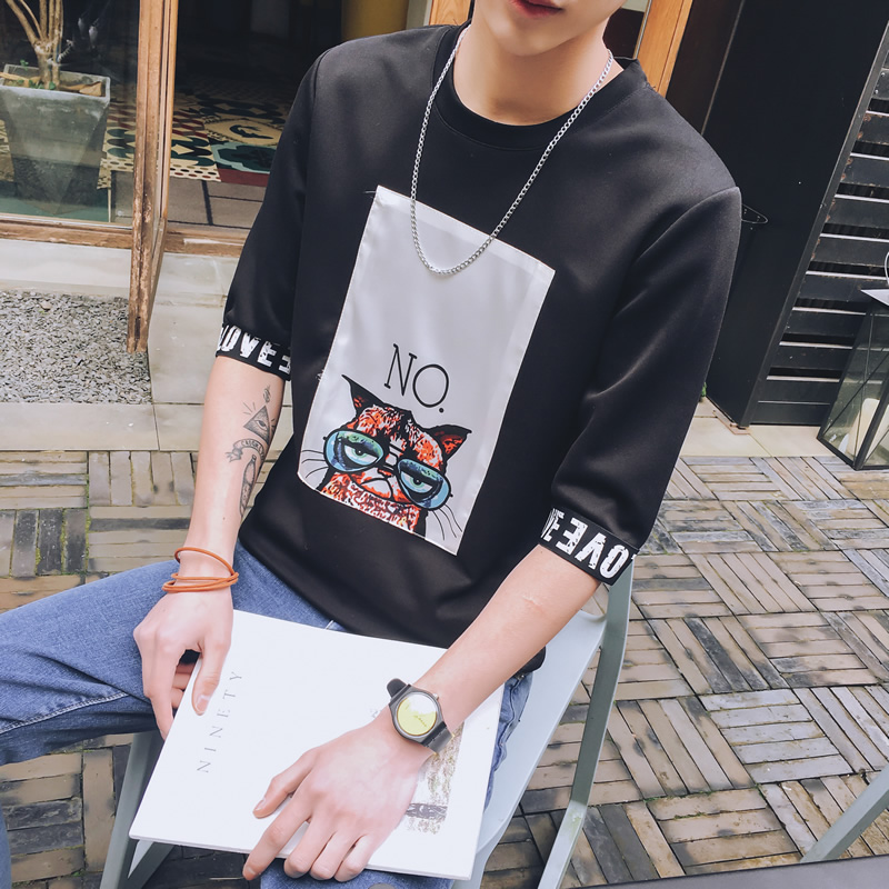 2017夏季新款潮流修身五分袖T恤男士短袖青少年圓領T恤