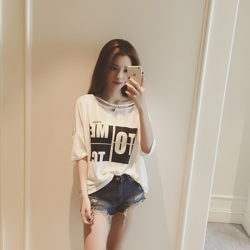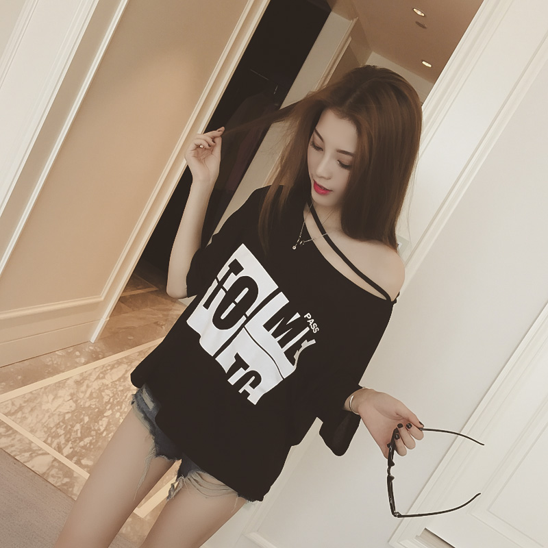 / 夏季韓版大碼女裝個性露肩寬大顯瘦短袖T恤胖MM百搭時尚上衣服潮