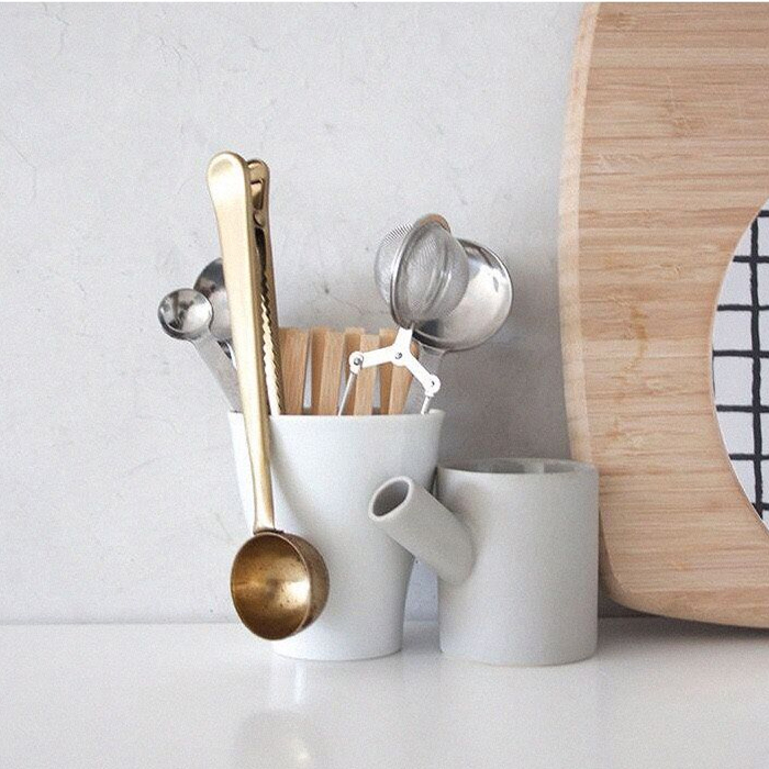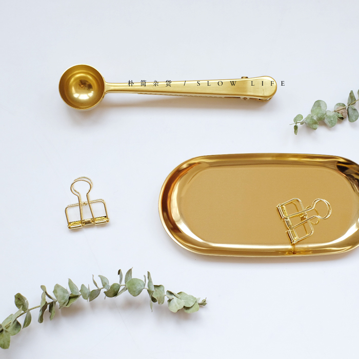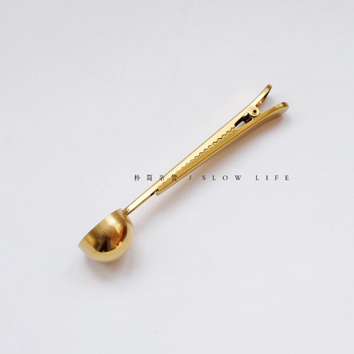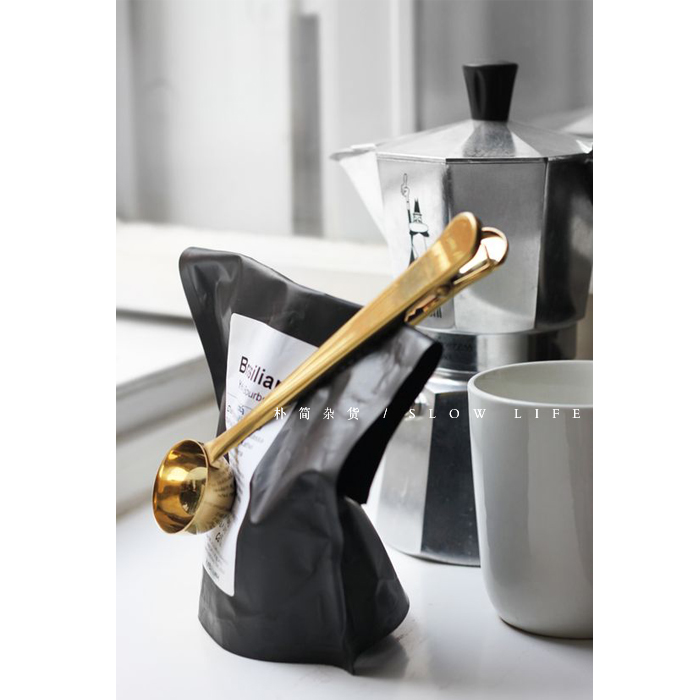 樸簡 北歐丹麥風黃銅金色不銹鋼咖啡勺 二合一奶粉勺量勺封口夾勺