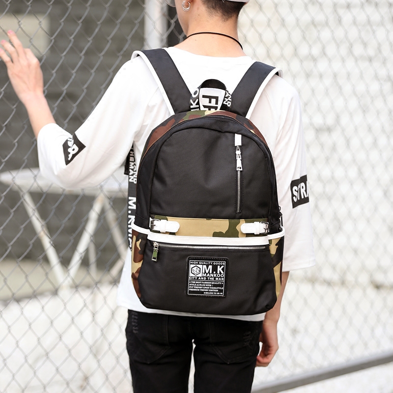 / 迷彩復古韓版男士背包潮流撞色帆布雙肩包學生書包國旗背包潮包