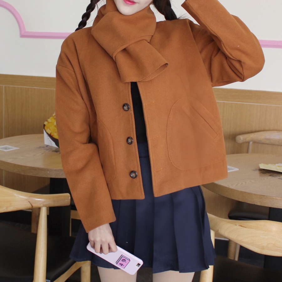 俏皮百搭的棕色小外套 里面是夾棉噠