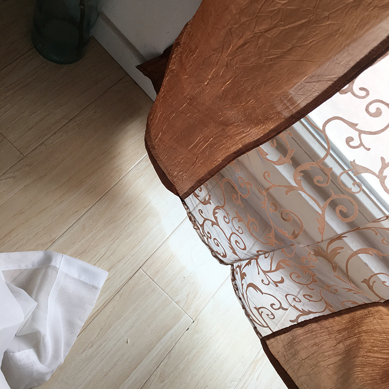 [白色莫奈]特價田園元素咖啡色掛簾落地成品窗簾