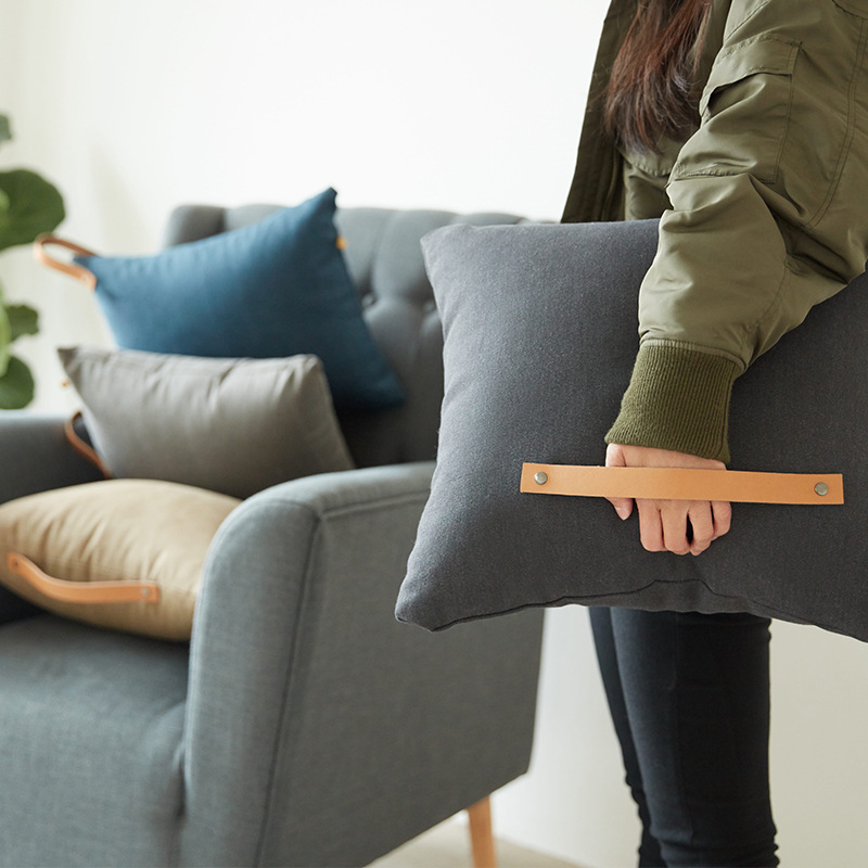 2017爆款地中海簡約皮帶手提抱枕腰枕水洗北歐極簡ins靠枕創意