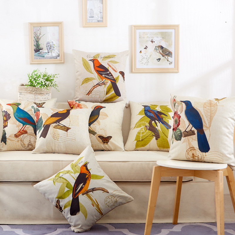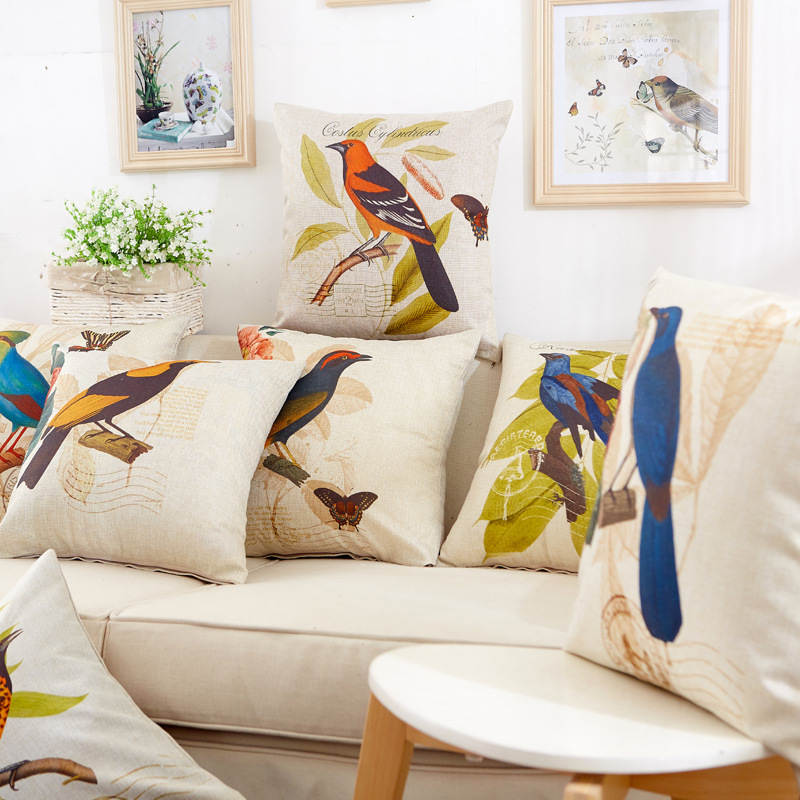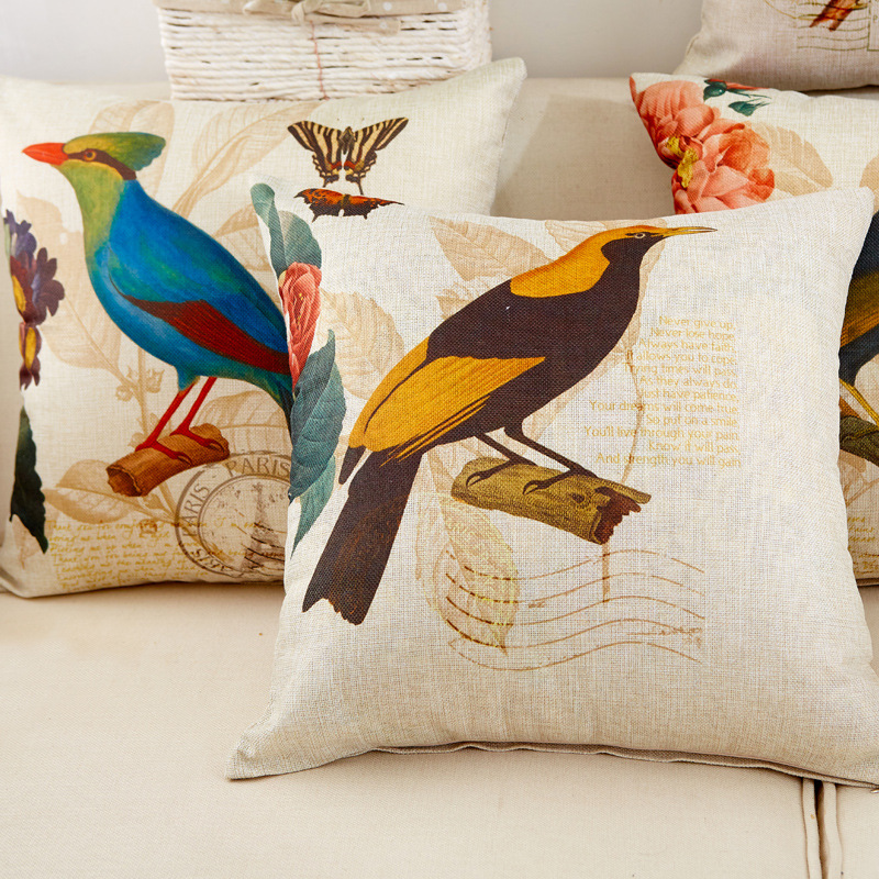 / 美式鄉村花鳥沙發抱枕靠墊汽車腰靠床頭靠背辦公室靠枕