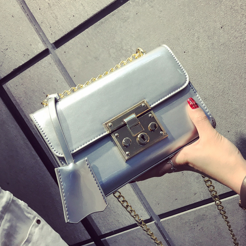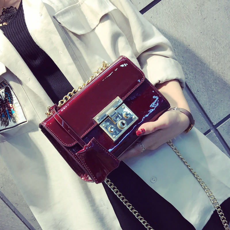 / 包包新款潮漆皮鎖扣小方包韓版百搭斜挎包女鏈條小包單肩女包
