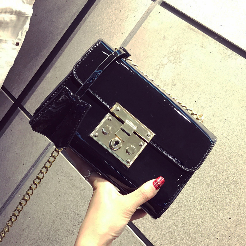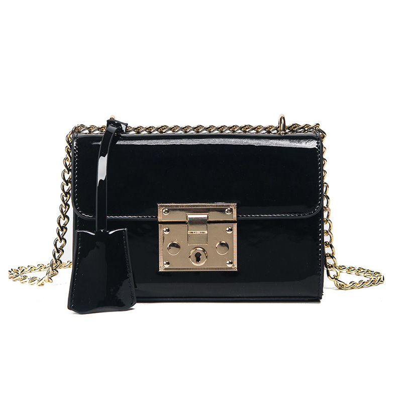 包包新款潮漆皮鎖扣小方包韓版百搭斜挎包女鏈條小包單肩女包