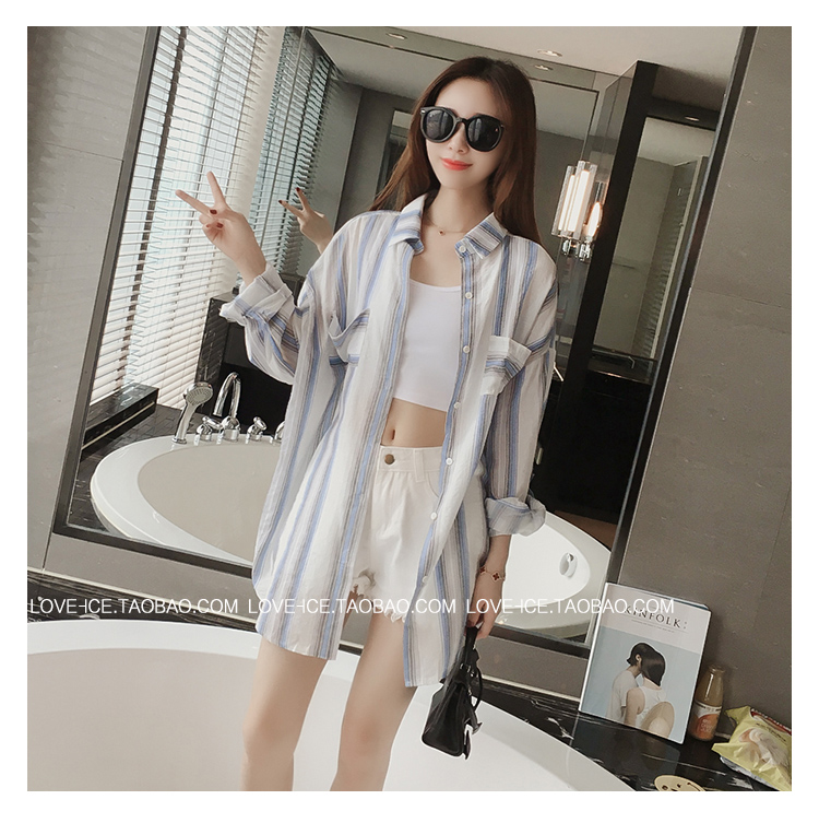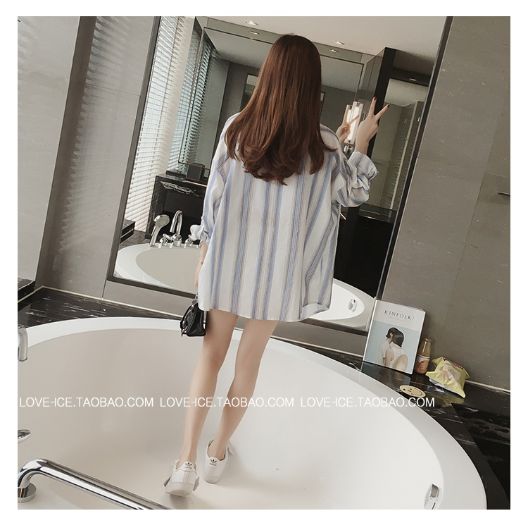 防曬衣女空調衫夏季新款女裝2017韓范寬松長袖中長款沙灘防曬襯衫