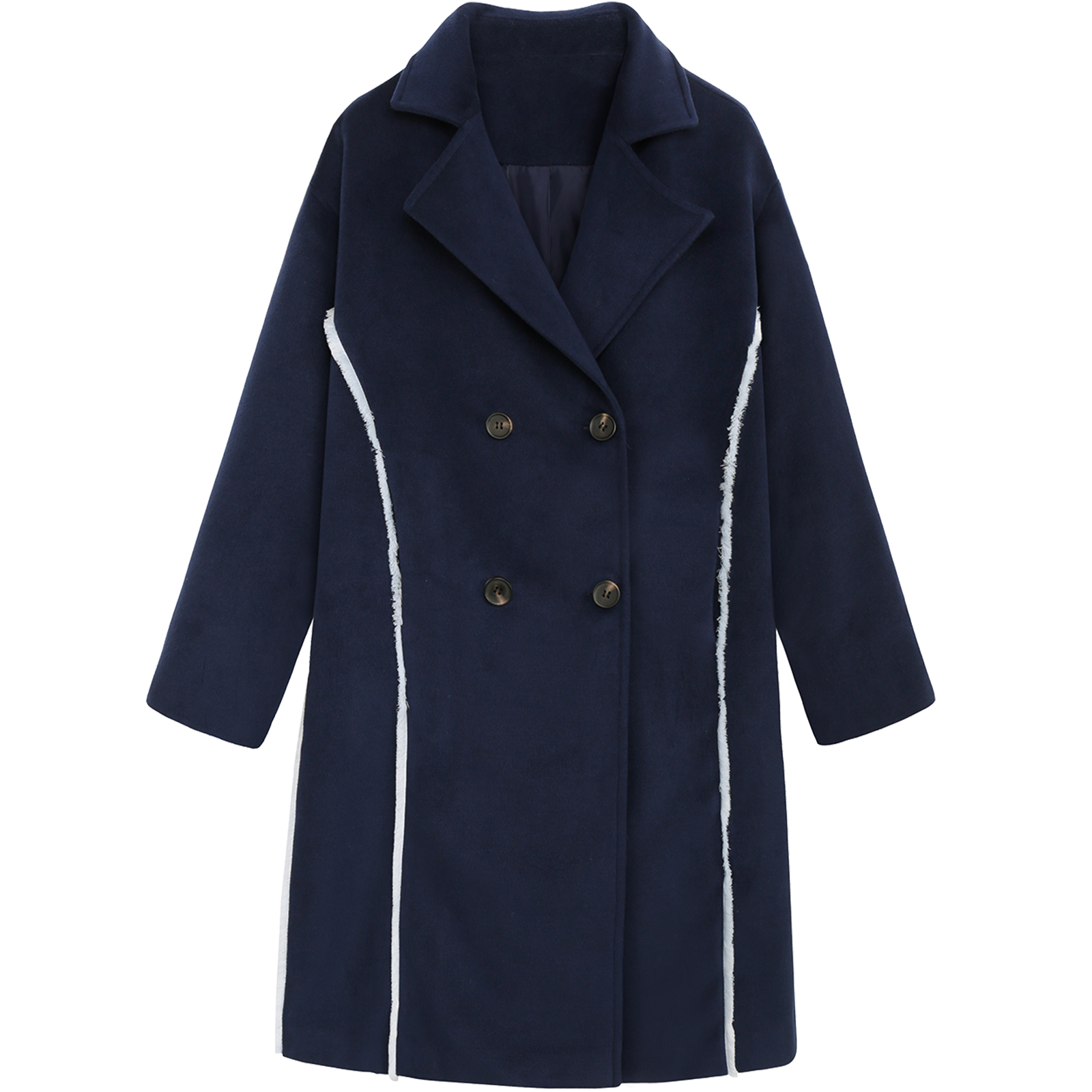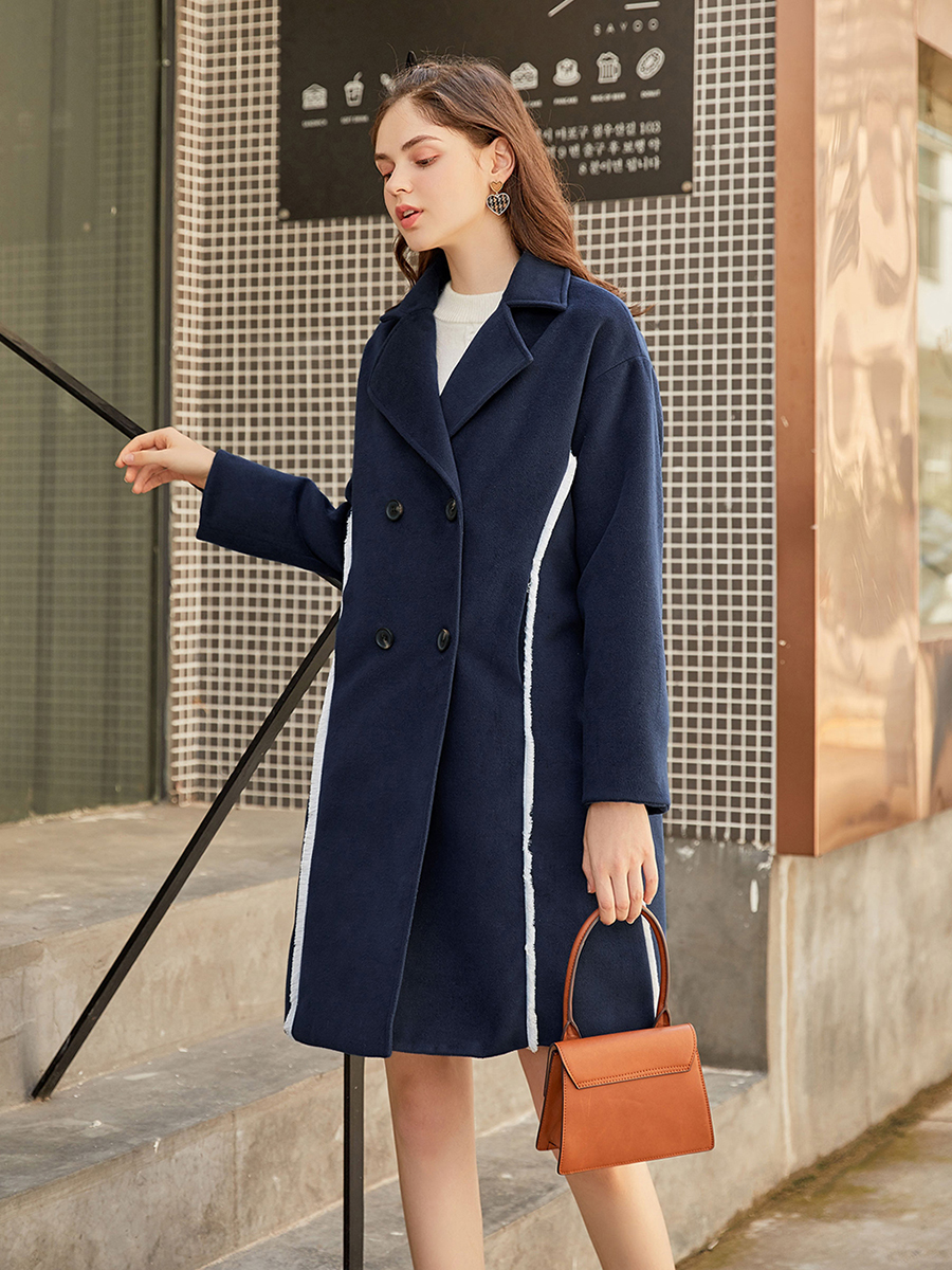 MG小象復古呢子大衣女中長款雙排扣秋冬新款寬松個性開叉毛呢外套