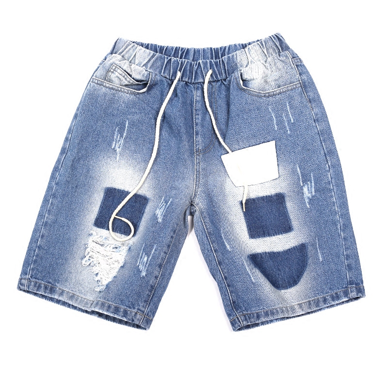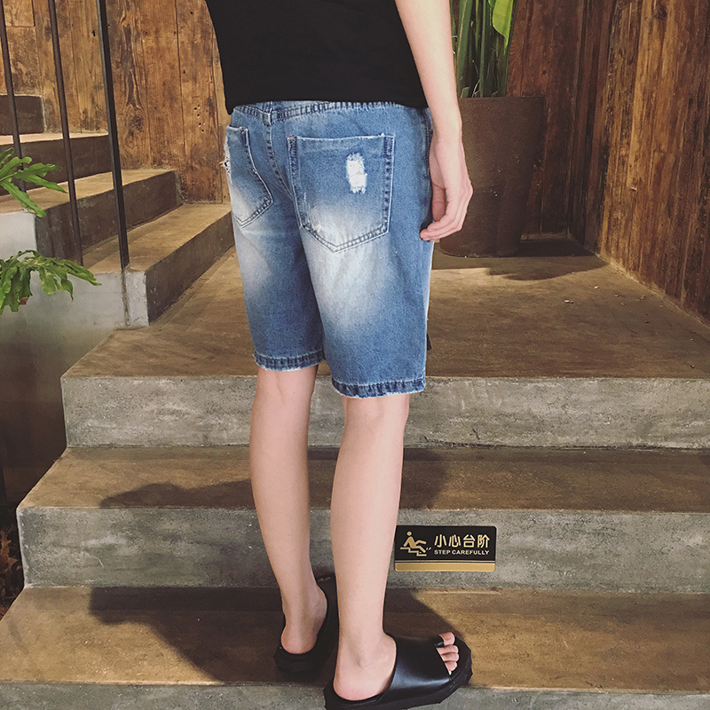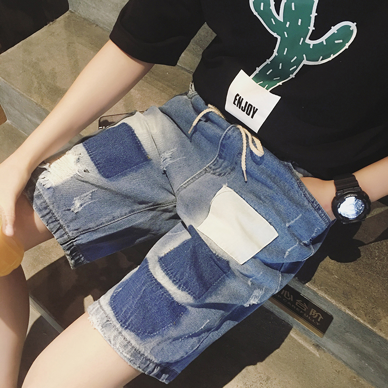 原創日韓貼布水洗韓版直筒男士牛仔短褲中褲