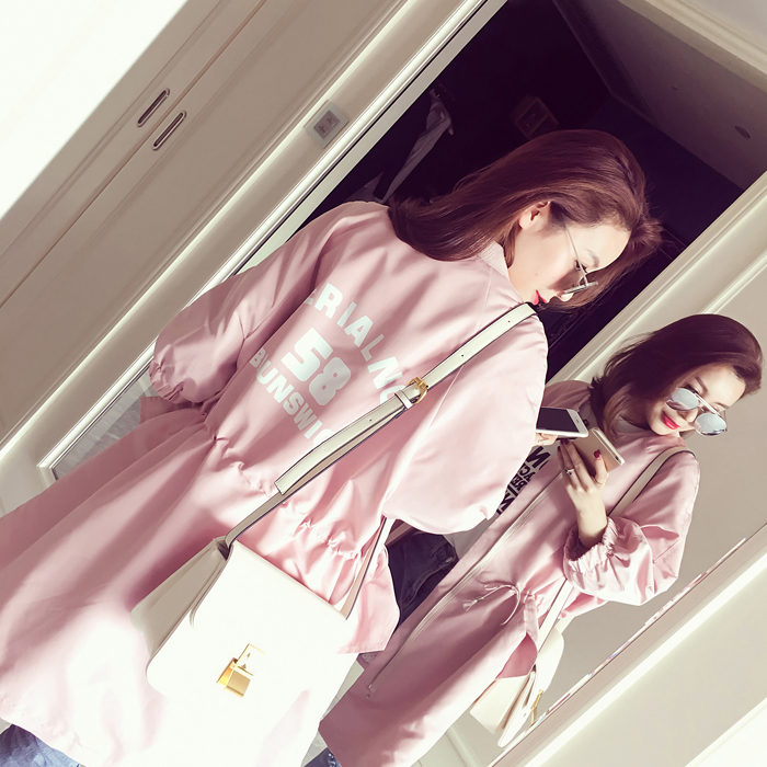 風衣女春秋季2016韓版外搭中長款bf風抽繩收腰上衣服學生百搭外套