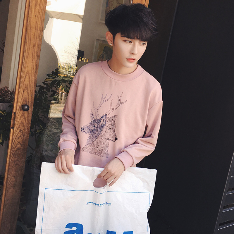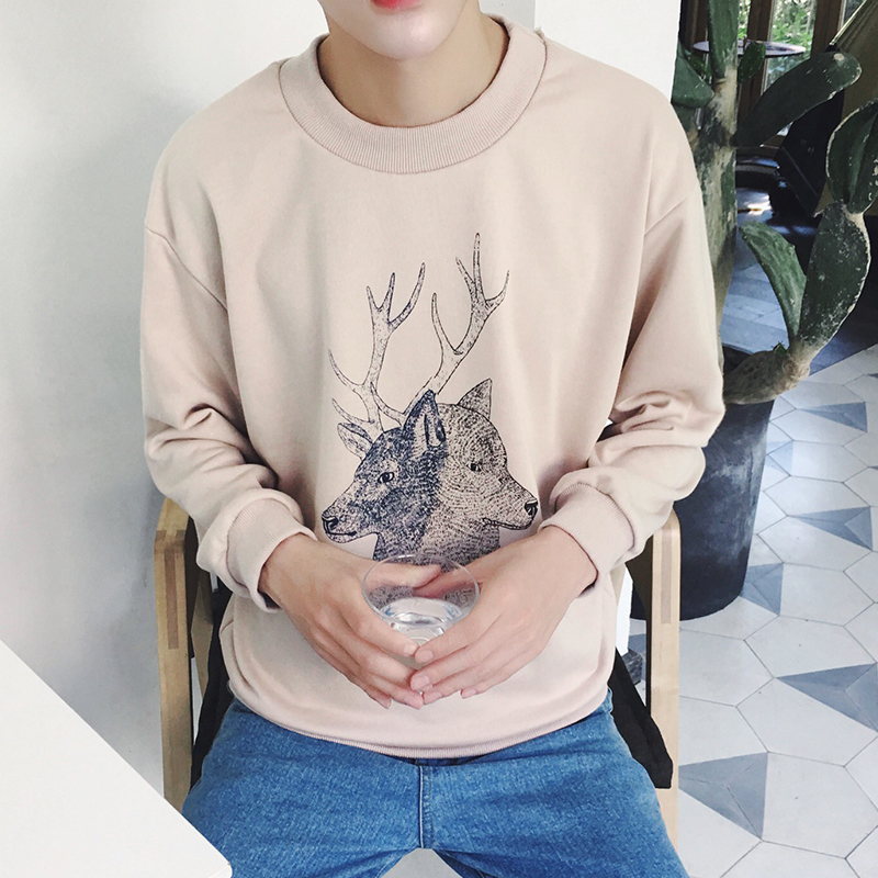 / 秋季新品小鹿卡通印花韓版男士圓領套頭衛衣外套
