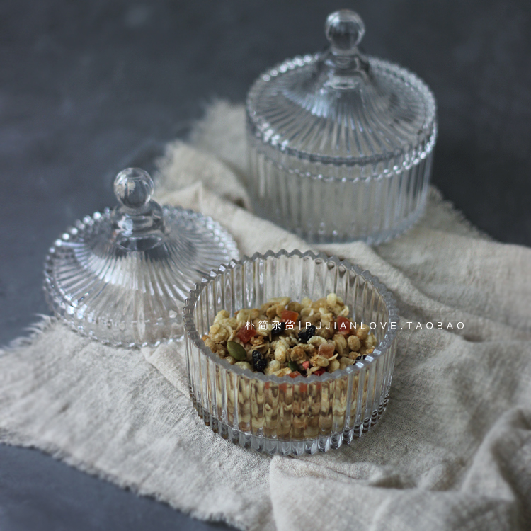 樸簡|北歐透明水晶玻璃儲物罐 帶蓋首飾收納罐 玻璃瓶糖罐