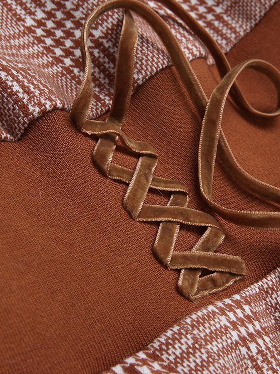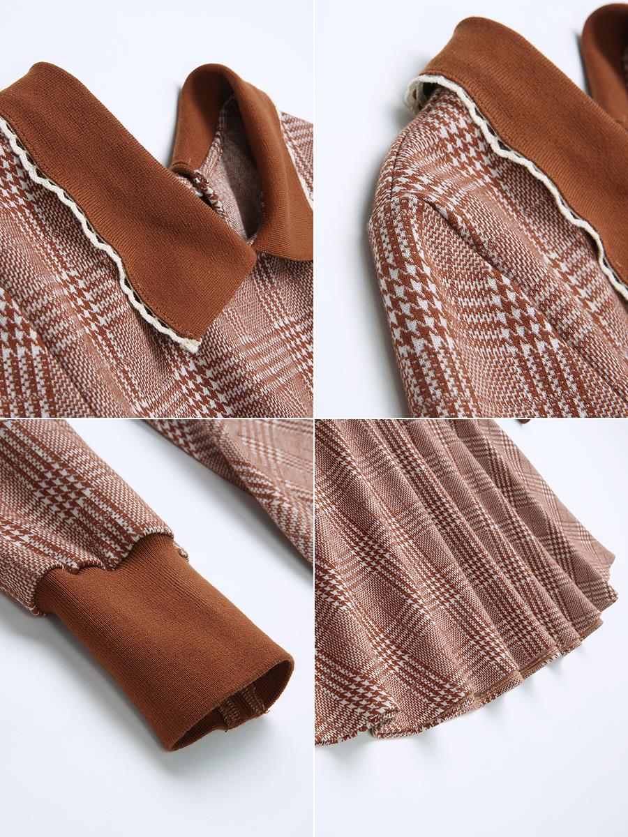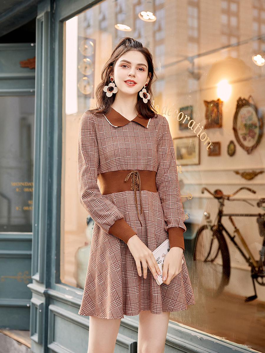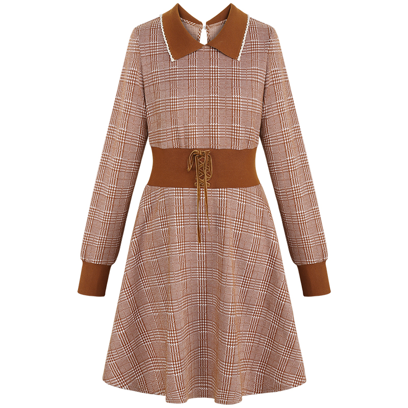 MG小象收腰格子連衣裙女長袖秋裝2018新款中長款修身顯瘦氣質裙子