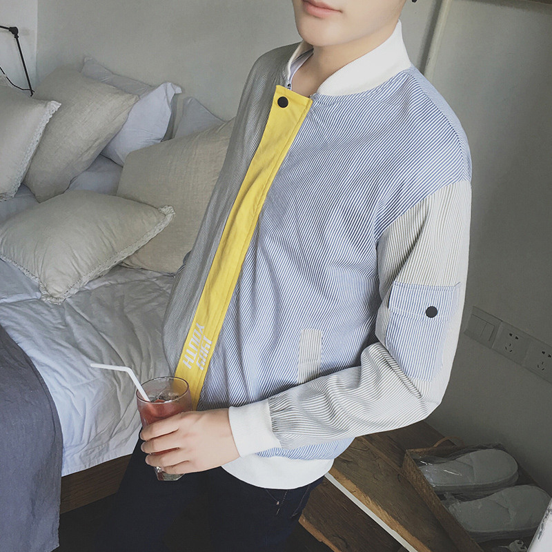 / 原創撞色條紋棒球領夾克韓版春新潮男港風修身外套