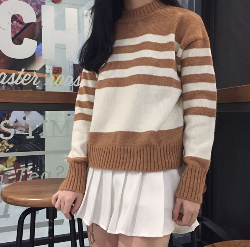 因為小面積條紋色彩的容易多了幾分復古基調