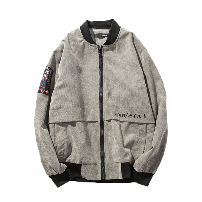 / 原創日系字母繡花燈芯絨潮男大碼夾克港風秋新棉衣