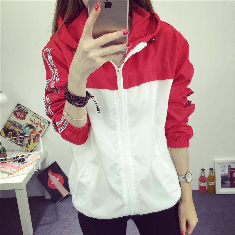 春夏外套女韓版學生BF原宿風寬松時尚拼色百搭連帽長袖休閑棒球服
