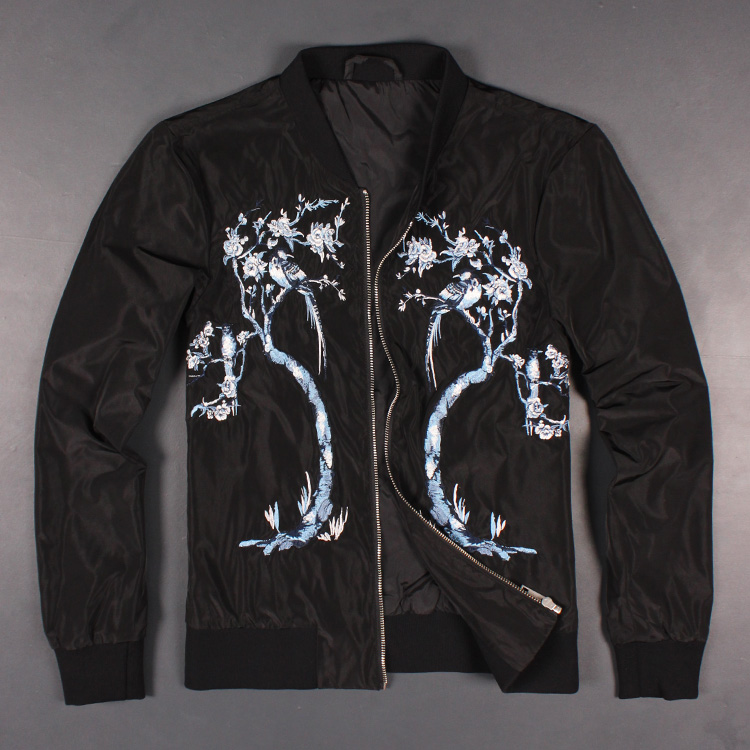 / 高端順滑桑蠶絲面料 精致刺繡圖案 棒球領男女時尚薄款夾克外套