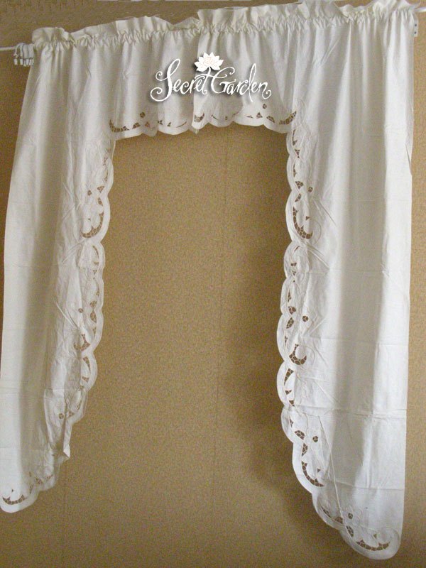 關于她:經典鄉村風……為窗更換新顏,多種美妙用途有待智慧愛美的你來慢慢開發,出口原單帶洗標,手工盤帶繡花工藝細致,設計可愛,手工蕾絲,每片都會有點小小不同,千萬不要要求它如機器制品一般工整……可搭配同系列本色簾頭,長半簾,短半簾,等等,不同款之間可能出現非常輕微的色差~