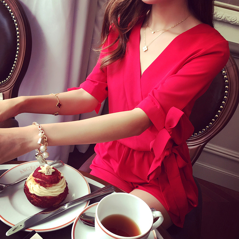 夏季特大碼女裝闊腿連體褲寬松胖妹妹200斤顯瘦短褲短袖假兩件套