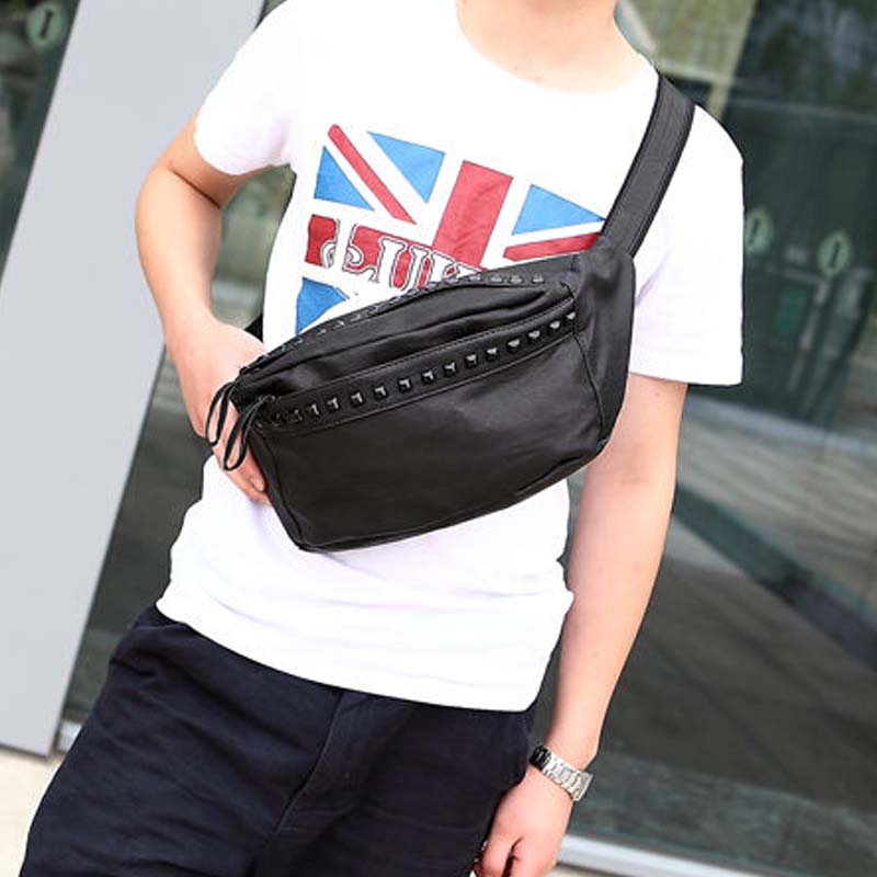 / 原創男包鉚釘腰包韓版男士小挎包時尚休閑男雙排鉚釘包胸包