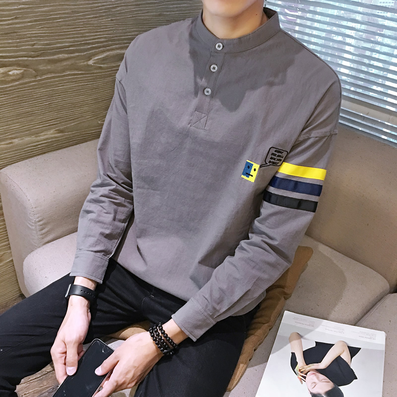 / 2017秋裝新款潮流韓版個性長袖T恤大碼 百塔長袖打底衫男裝