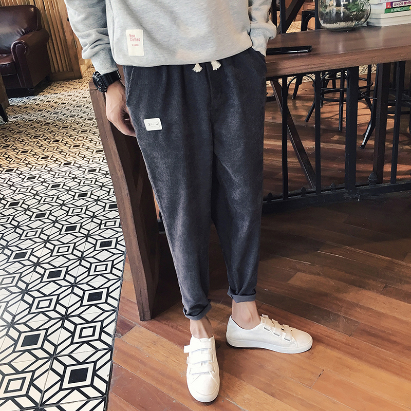 / 新款冬裝哈倫褲貼標小腳褲男士寬松垮褲大碼休閑褲