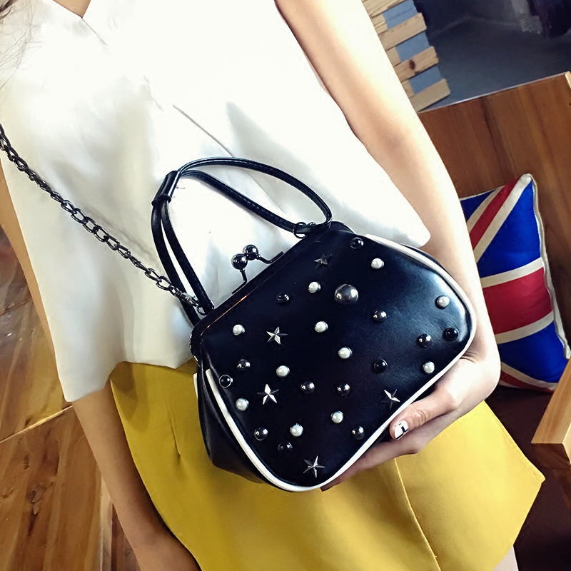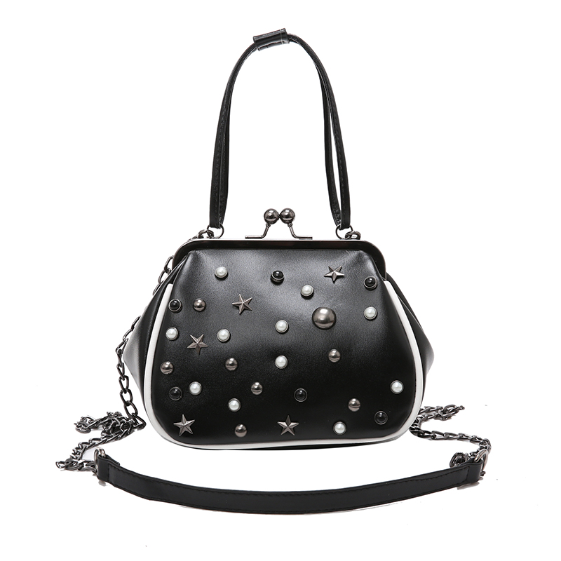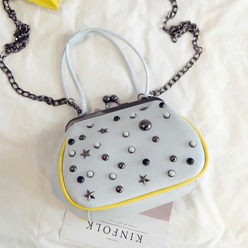 / 鏈條包包女新款潮撞色鉚釘單肩女包小包貝殼包韓版百搭斜挎包