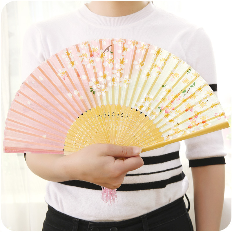 / 手工創意和風復古櫻花竹扇子夏季手搖帶穗子小扇古風真蠶絲折扇面