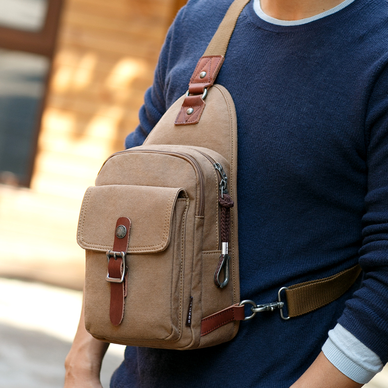 / 胸包男士時尚潮流帆布小包腰包騎行包單肩包斜挎包男包包