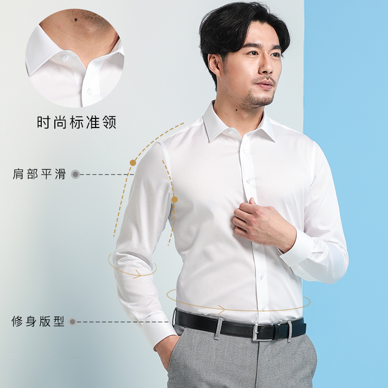 / 免燙襯衫男長袖抗皺商務休閑防皺全棉百搭休閑修身韓版提花白襯衣