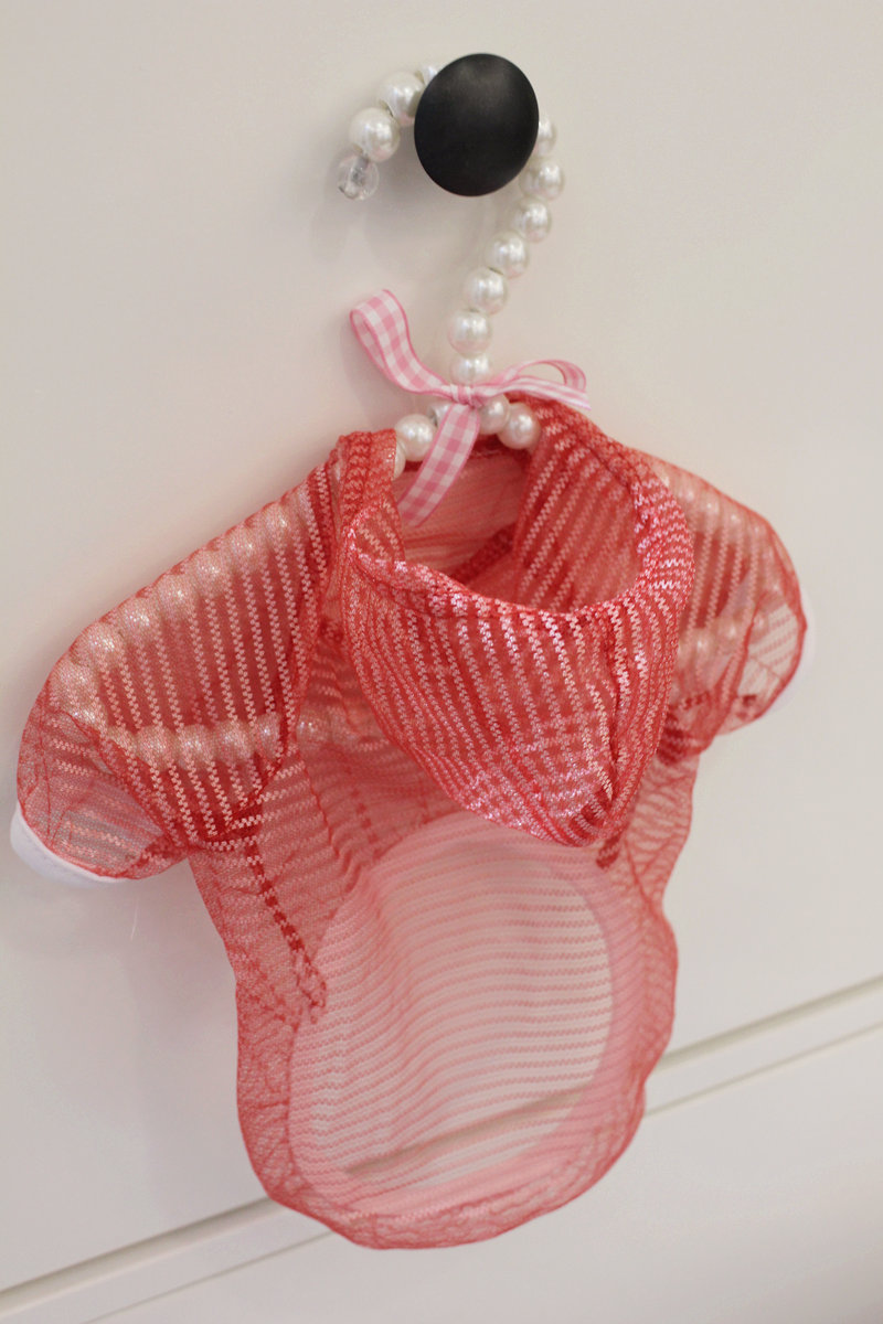 很可愛の一件小防曬服哦~~~好輕好輕的~有點就是穿在狗狗身上感覺沒穿一樣輕飄的材質哈哈~~很適合春夏穿著~而且這種網紗材質能防蟲防蚊!狗狗夏天就算剃光了毛都不用怕蚊蟲叮咬脆弱部位~~所以呀~~很推薦大家入的~價格也比較劃算的~~不心疼的價格!!尺寸的話一定要量胸圍背長!!