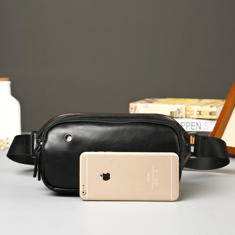 日韓男士新款小腰包潮流皮質小胸包小挎包休閑出行騎車小包