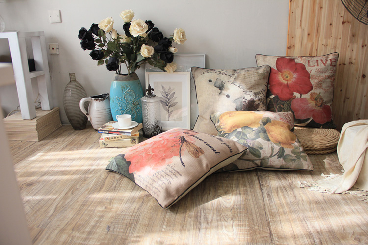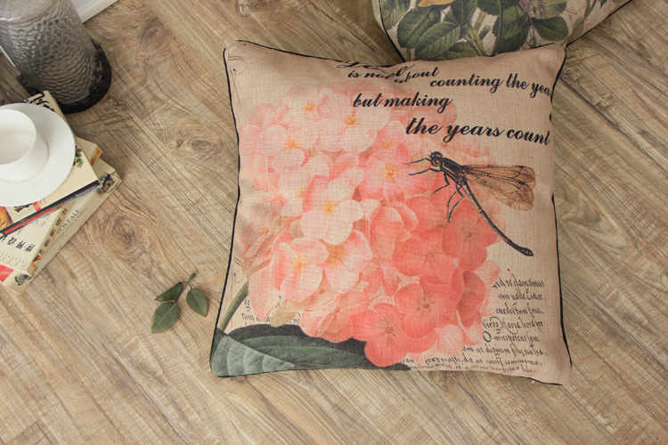 天然亞麻面料,單面印花,黑色滾邊,隱形精巧拉鏈。