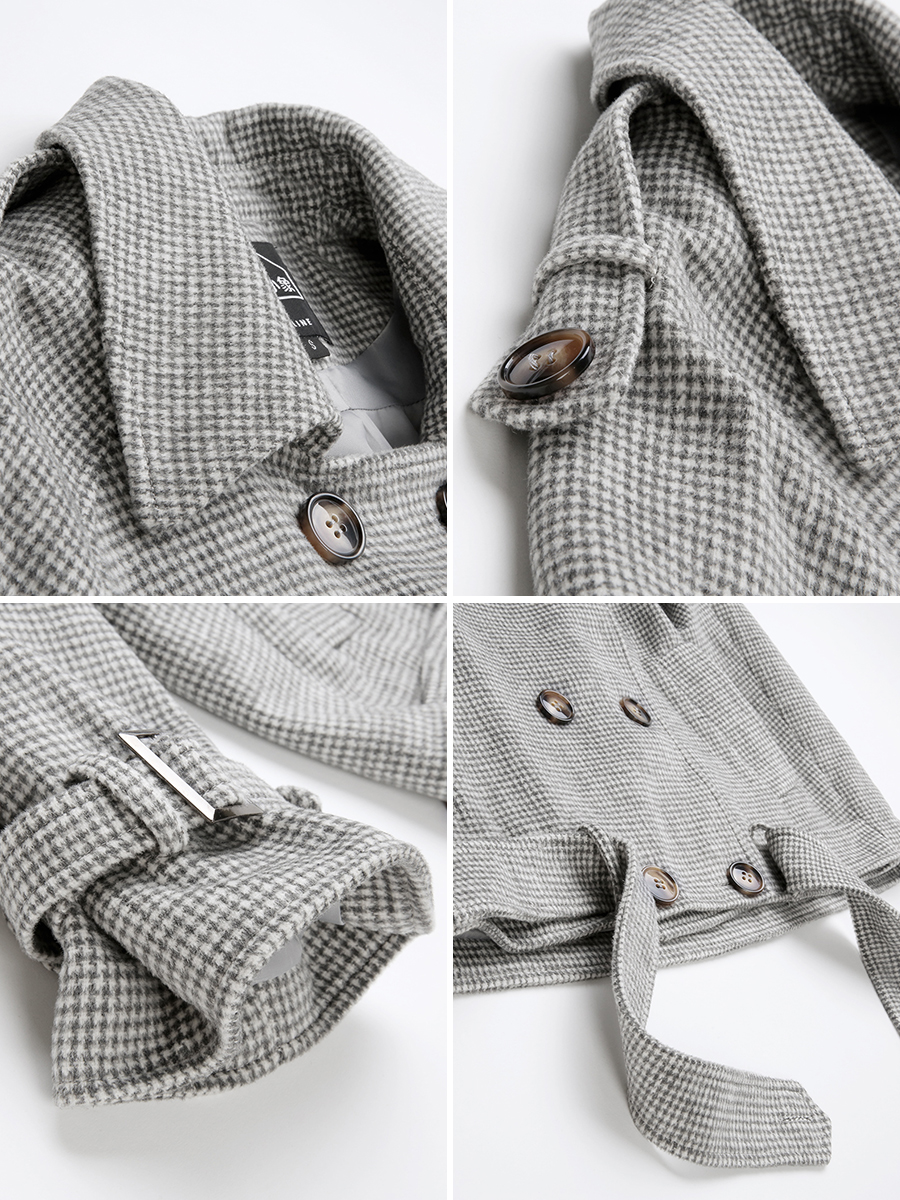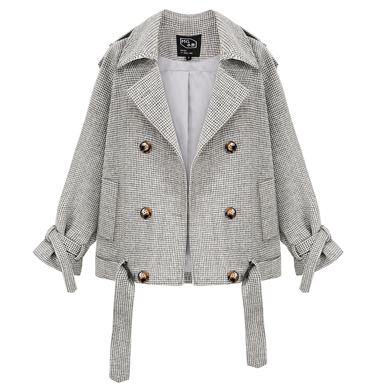 MG小象復古格子毛呢外套女冬新款雙排扣學生寬松2018流行呢子大衣