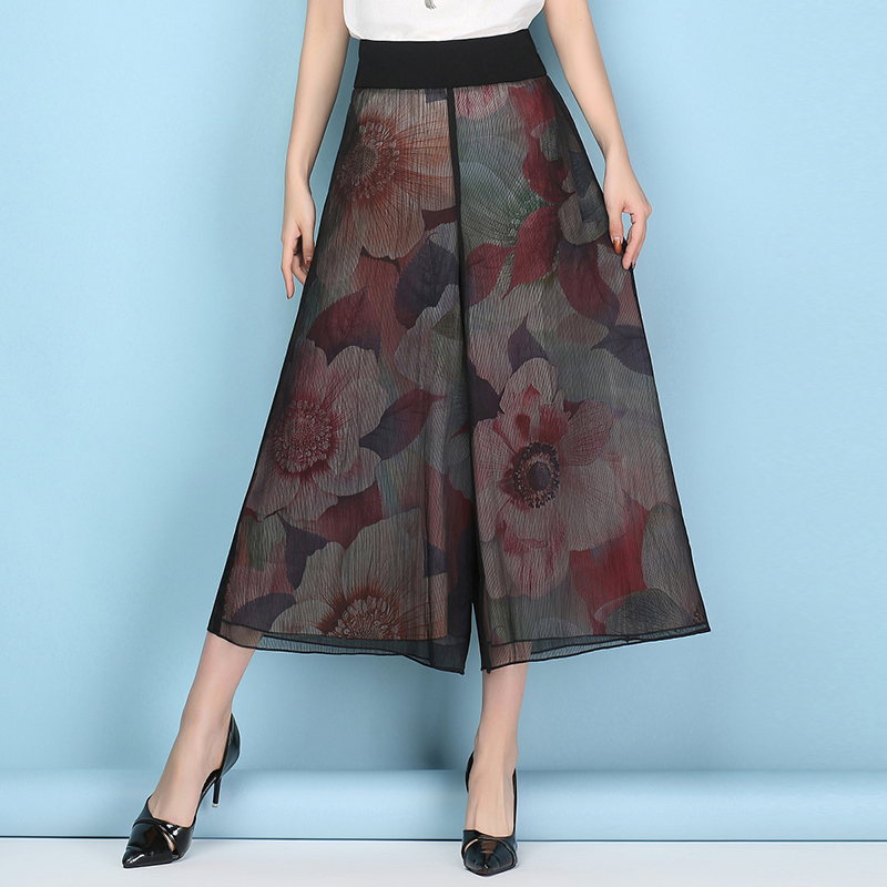 / 闊腿褲女九分褲春夏高腰寬松大碼休閑松緊雪紡寬腿褲裙大腳甩腿褲