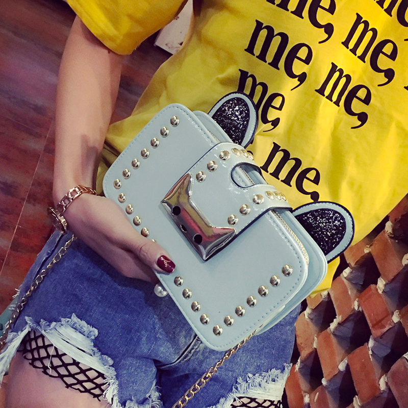 / 包包女新款潮可愛貓耳小方包鏈條包鉚釘單肩女包韓版斜挎小包