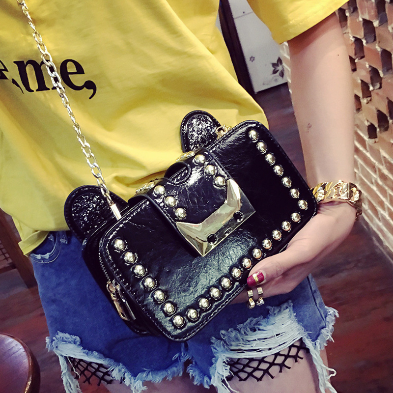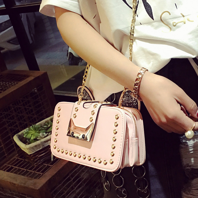 包包女新款潮可愛貓耳小方包鏈條包鉚釘單肩女包韓版斜挎小包