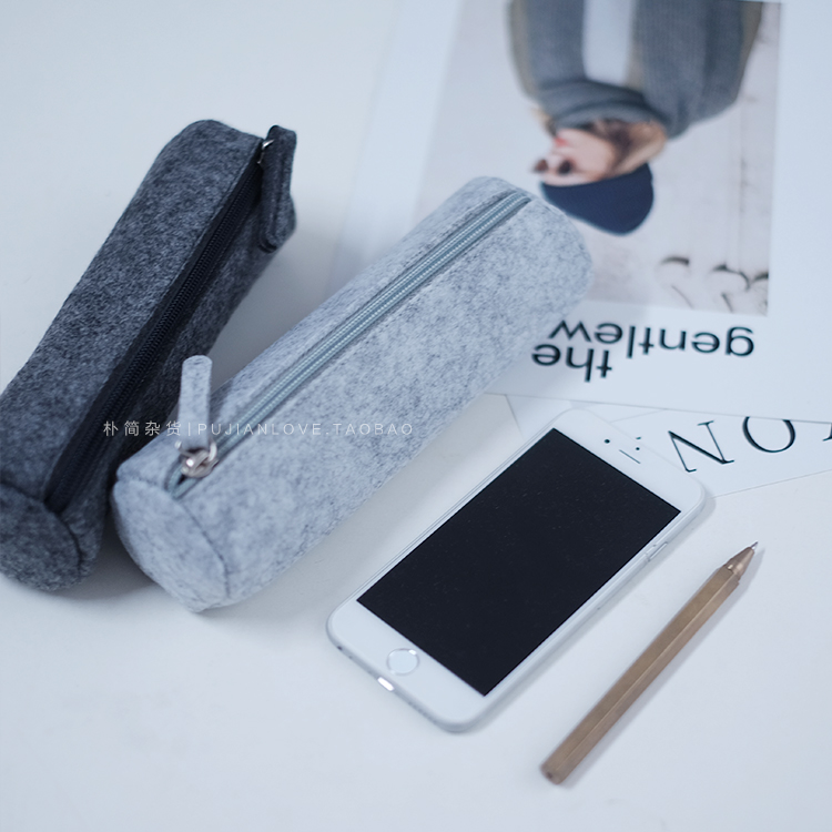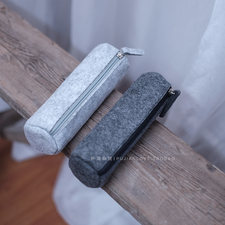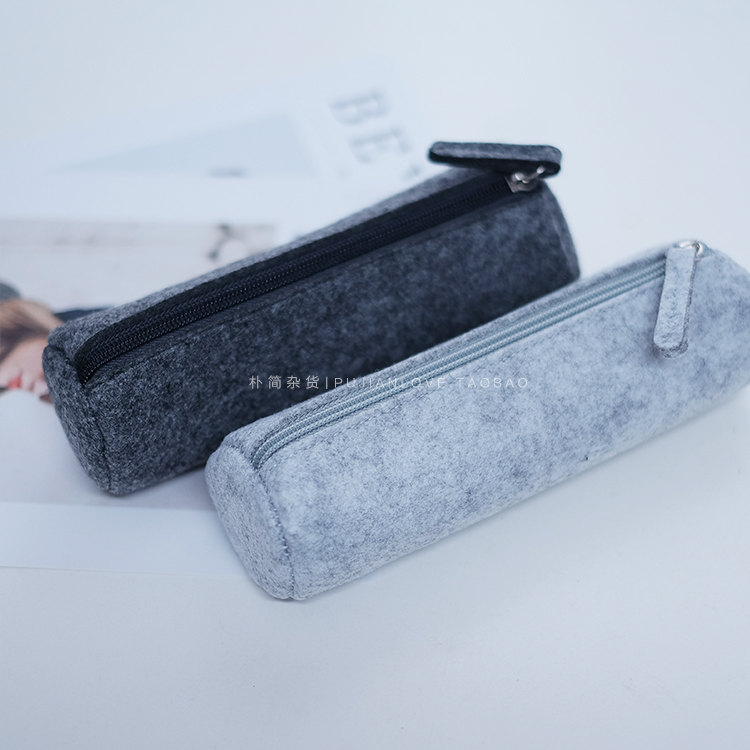 北歐風格簡約毛氈拉鏈圓筒筆袋 化妝品工具收納袋