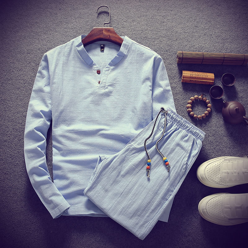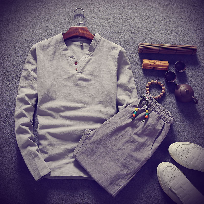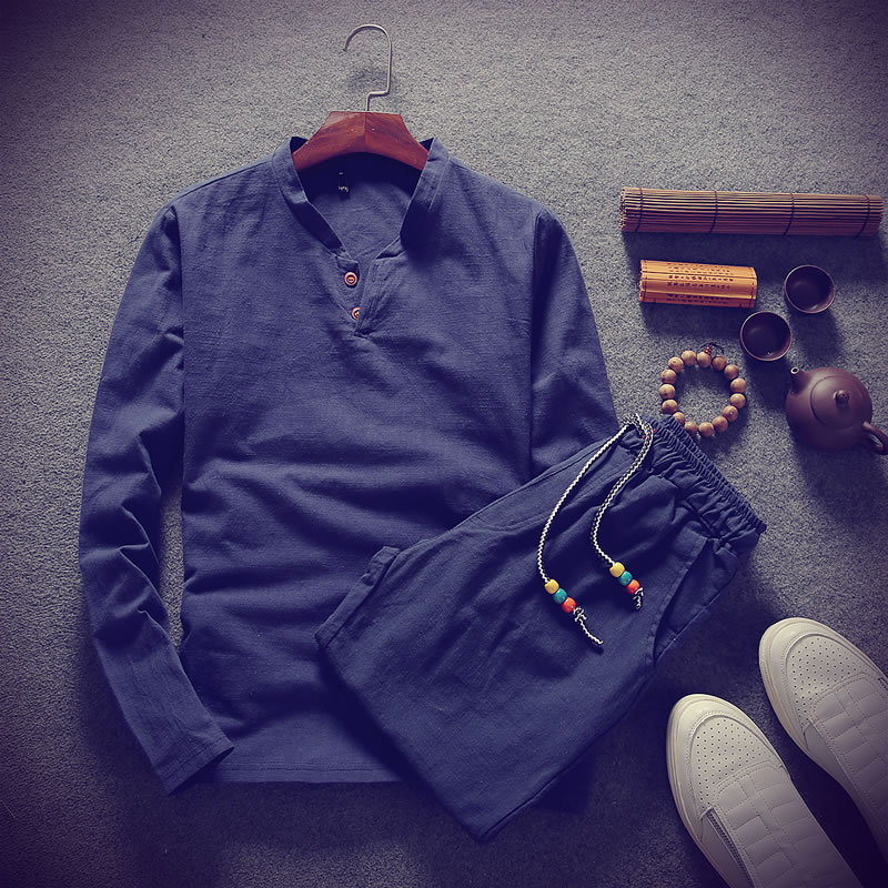 / 2017秋裝新款潮流休閑時尚大碼 V領長袖棉麻T恤大碼男