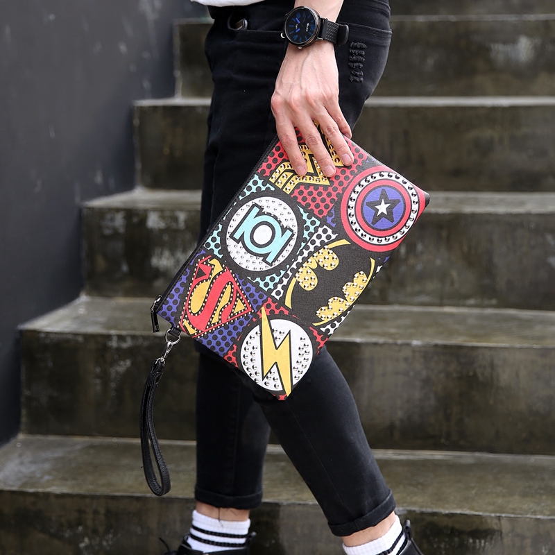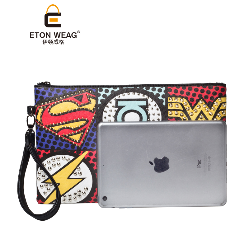/ 原創韓版新款男印花手拿包潮流鉚釘手腕包iPad包文件包紋章包