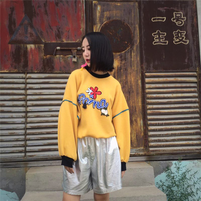/ 秋裝韓版新款寬松顯瘦上衣字母蝙蝠長袖衛衣絨衫圓領套頭女裝