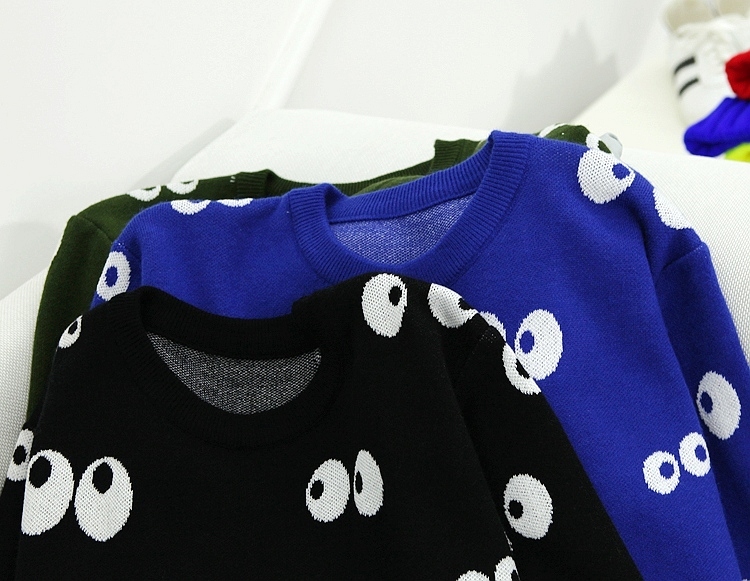 韓國秋冬款圓領長袖眼睛圖案學生針織連衣裙女中長款打底裙