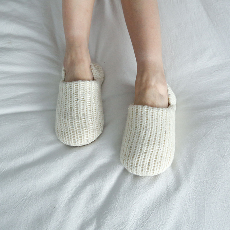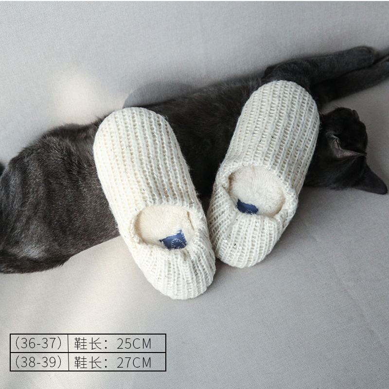 冬季保暖亮片針織超柔室內拖鞋加厚記憶棉靜音包跟拖鞋