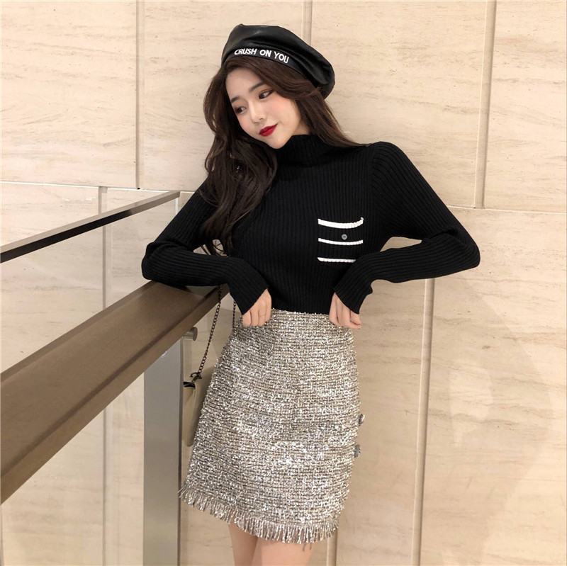韓版高領扣子長袖針織衫
