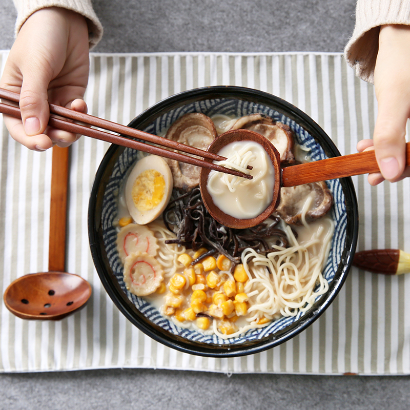 / 云木雜貨 日式竹柄木質拉面勺火鍋勺湯勺漏勺原木長柄帶孔木勺子