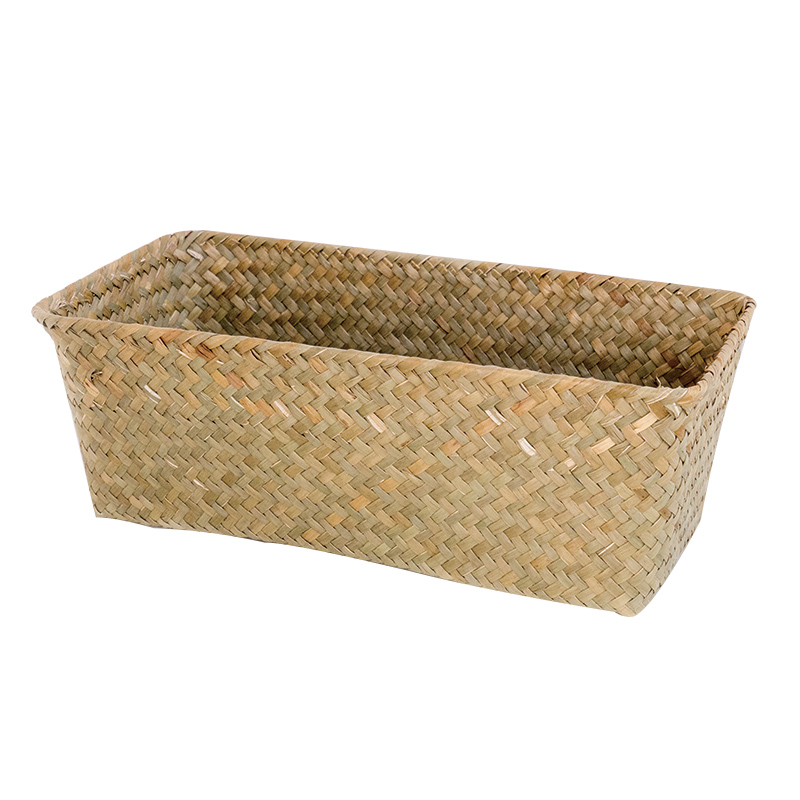 純手工海草編織收納籃雜物整理盒置物籃長條形收納筐